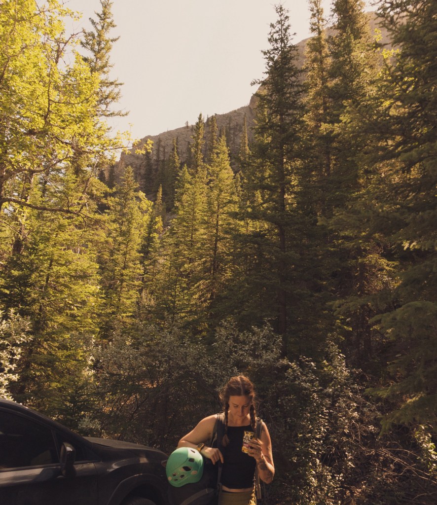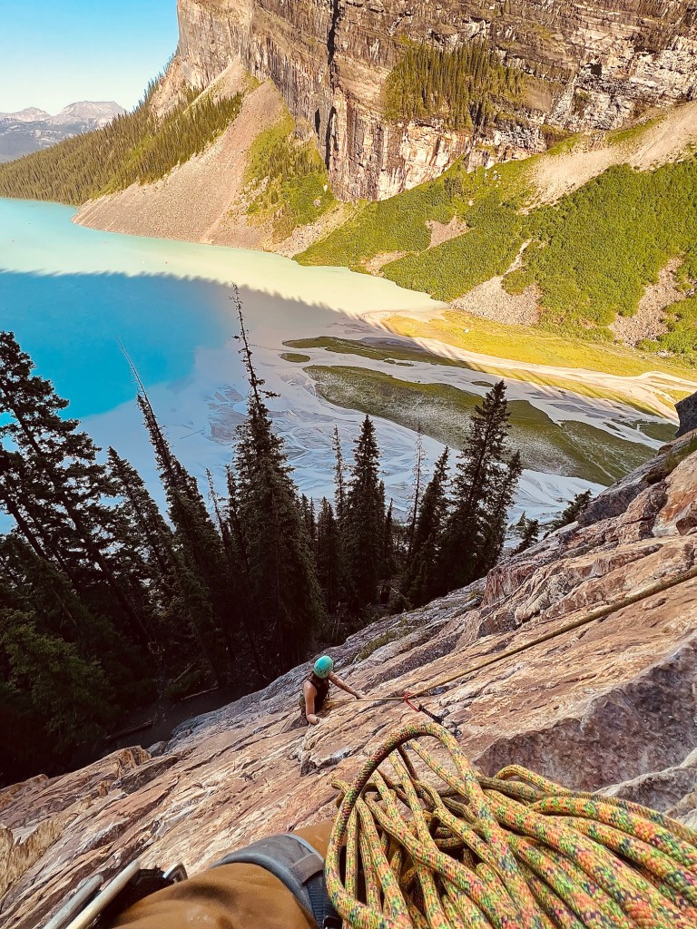 We continued north into Kootenay National Park, then through Banff, and east into Canmore. We were remote working for the week, so we rented an Airbnb-(linked here) to act as our “base camp”. From there, we had an absolute blast exploring big mountains, climbing above bright blue lakes, and biking through thick trees. We worked from 6am or so until lunchtime for the entire week & spend our afternoons/evenings on adventures! Saturday was reserved for a huge rock climb- to wrap up the trip.