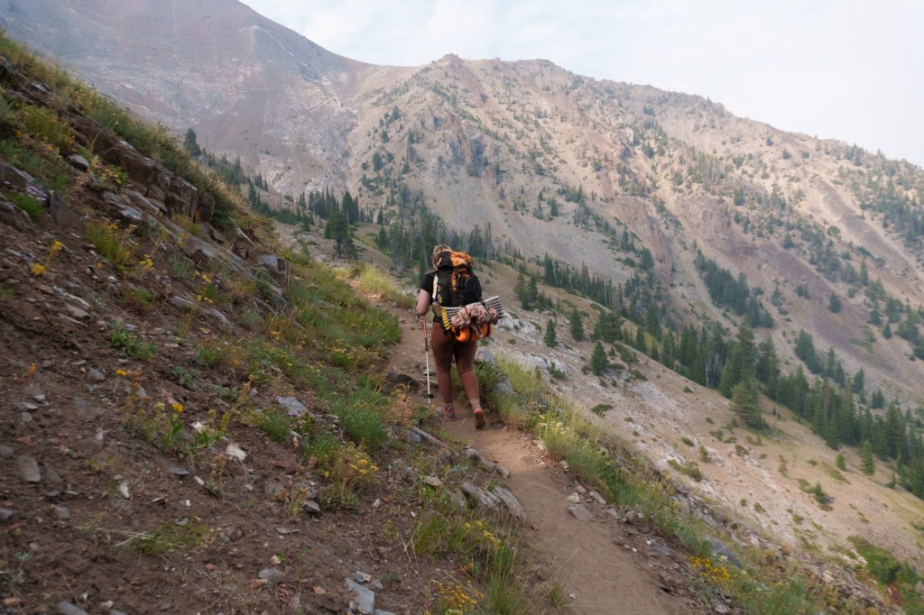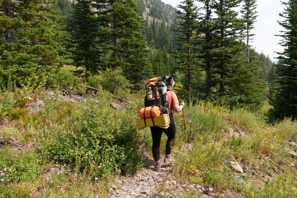 We arrived late in the day at Hurricane Creek trailhead, got the last spot in the lot, and headed the steep 5 or so miles (straight) up to the lake. It hadn’t been cleared in years, but the 4 of us (phin, me, piñon, and goose) made it up by dusk with… a lot of scratches, sore muscles, & wide eyes enchanted by the beauty!