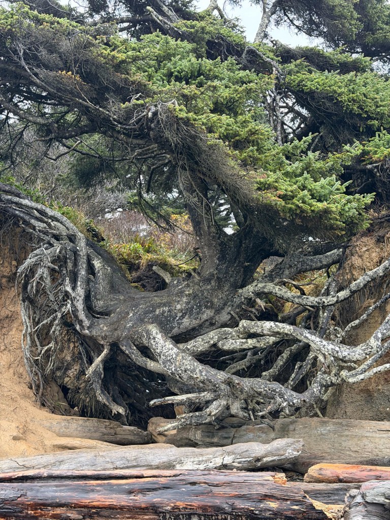 We spent just a few days in Olympic due to the record breaking wind & rains! Evacuated from campground? Yes that happened! Some long beach walks, one neat rainforest loop, and some funky trees were spotted! Too short, need to come back when it’s not a torrential downpour!