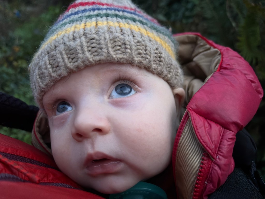 Saw a beaver and a beautiful valley of sage. Oh, how I love the smell of sage in the winter. Dogs almost got into some poison oak berries… dodged that bullet! Basil boops is bundled up and enjoying his “nature baby” status.